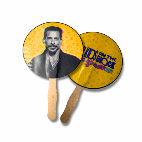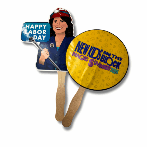 Stand out with our Custom Hand Fans, crafted from eco-friendly cardboard and printed in full colour on both sides. Designed to fit within a 20cm diameter, each fan features a wooden handle placed between the cardboard layers. Custom shapes are available t
