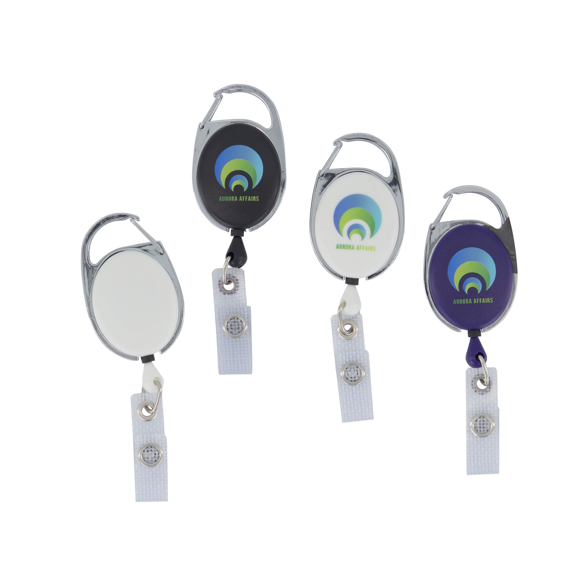 Deluxe oval retractable reel with Vinyl Strap. External chrome/plastic body and stainless steel internal springs.