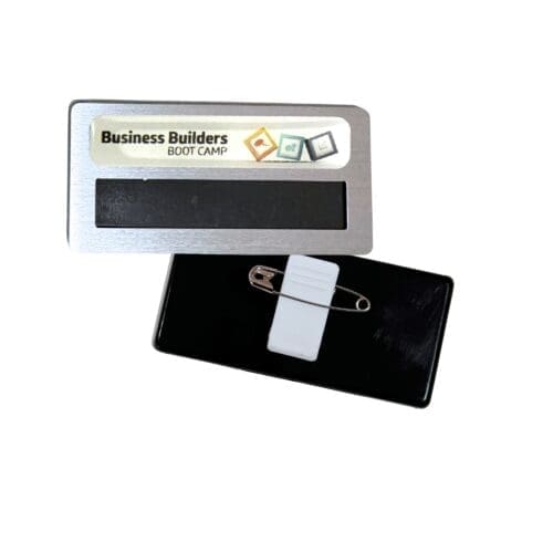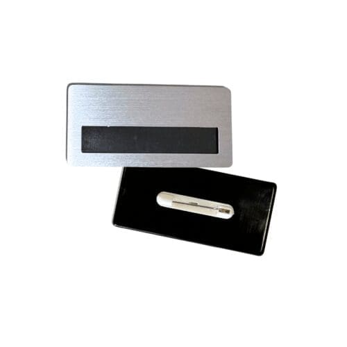 Metallic Silver Base Blank DIY Staff Name Badge. Easy to keep your staff badges up to date with DIY insert.