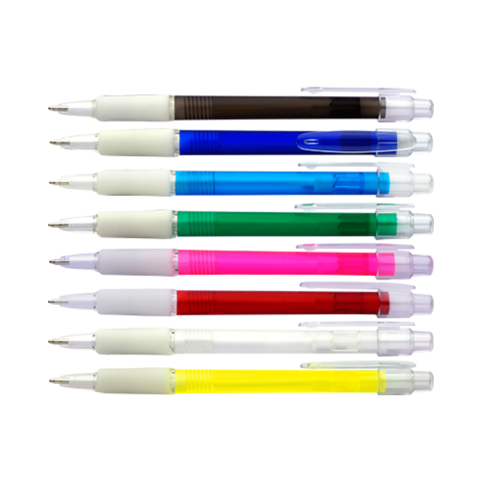 Rubber grip and translucent frosted barrel. Includes artwork set up and printing for 1 colour 1 position.
