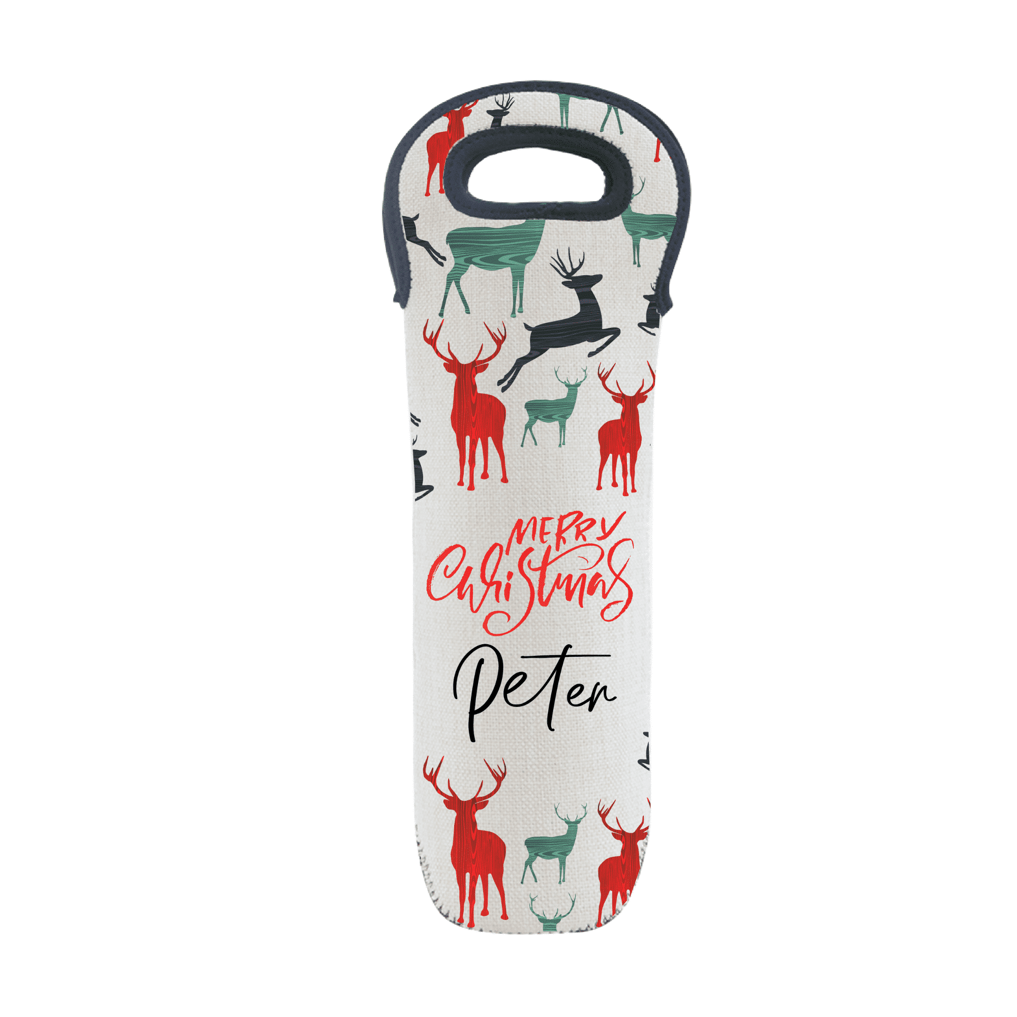 Locally printed full colour print linen look Cooler Wine Bag with black neoprene inner insulation.
