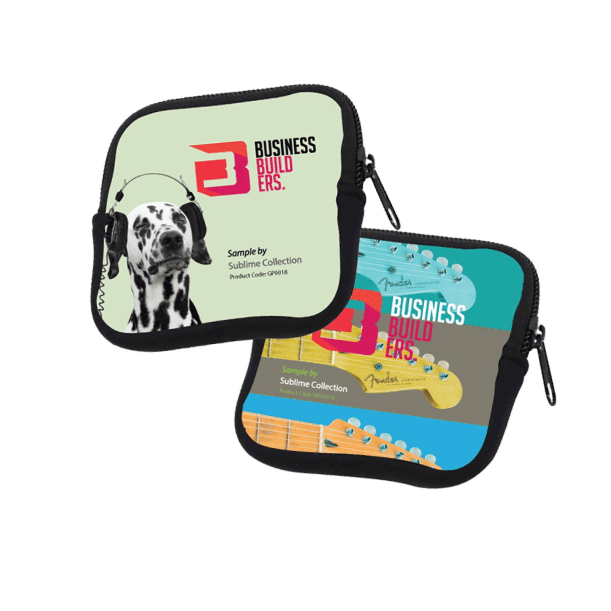 Locally printed 100% Polyester Neoprene Suitable for earbuds or small items 10cm x 10cm Vibrant Sublimated Print Double-Sided Branding Strong Zipper.