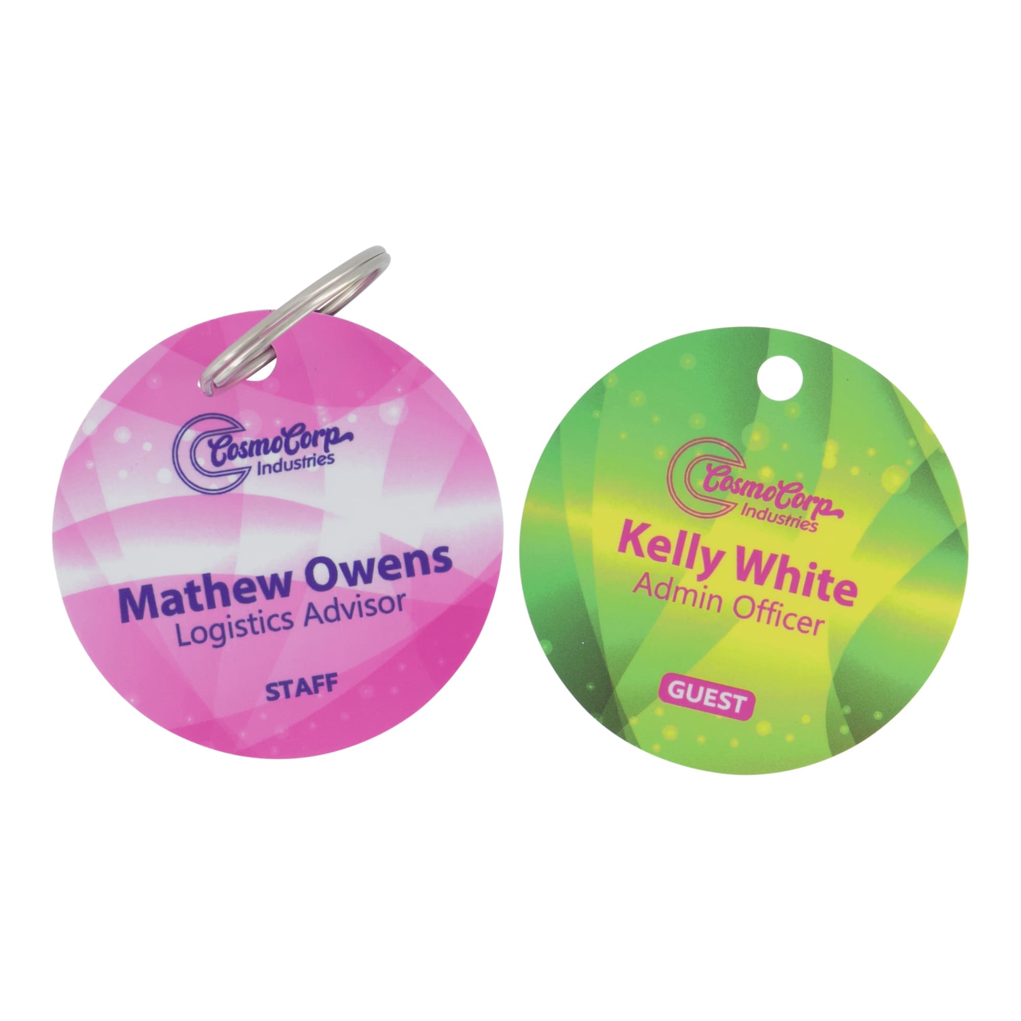 Matt finish PET plastic 50mm round tag with Hole for keyring.