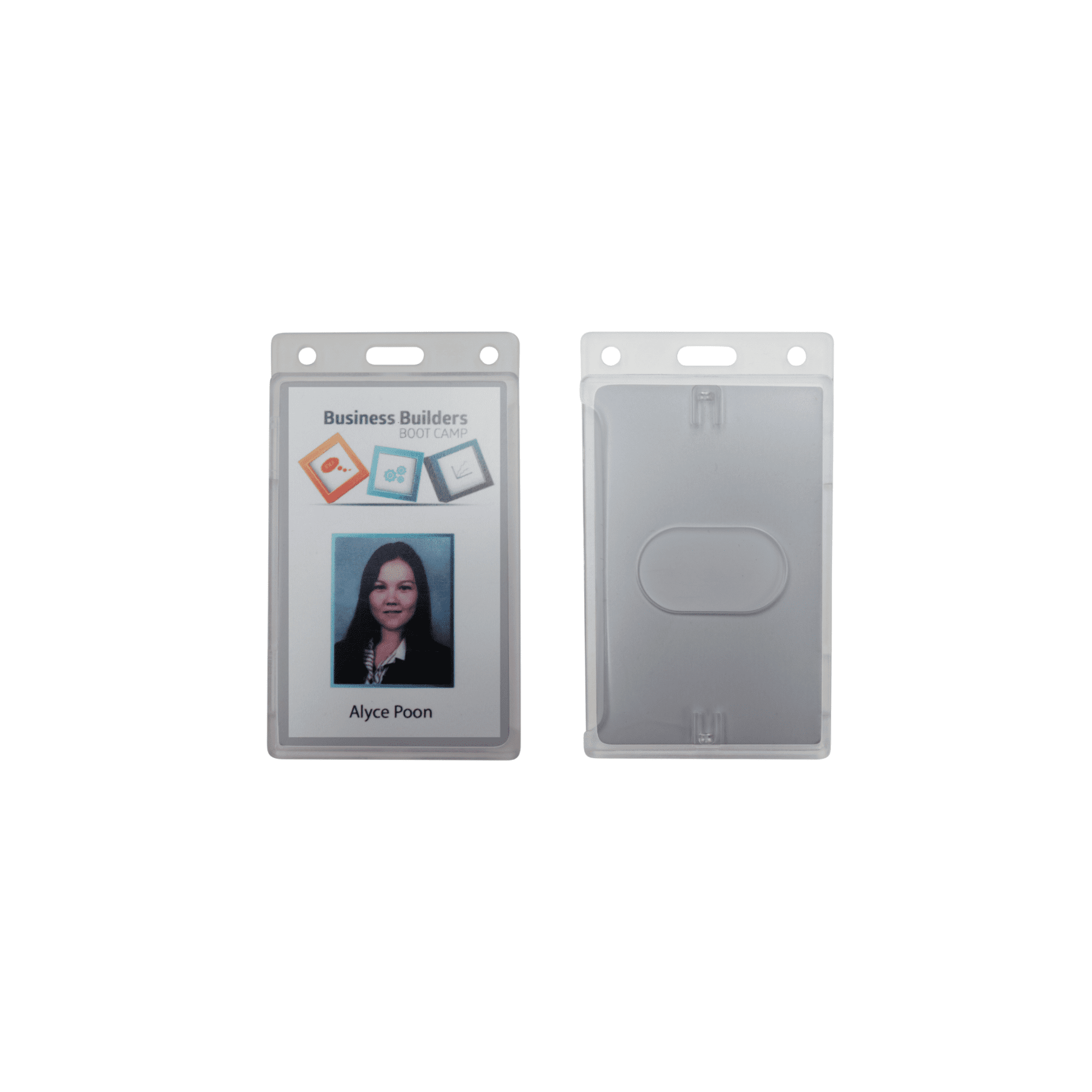 Rigid Frosted Finish ID Card Holder – Suitable for Plastic ID cards. Photo ID not included BUT ask us about these. You can now add the option to have a full colour logo printed on the holder.
