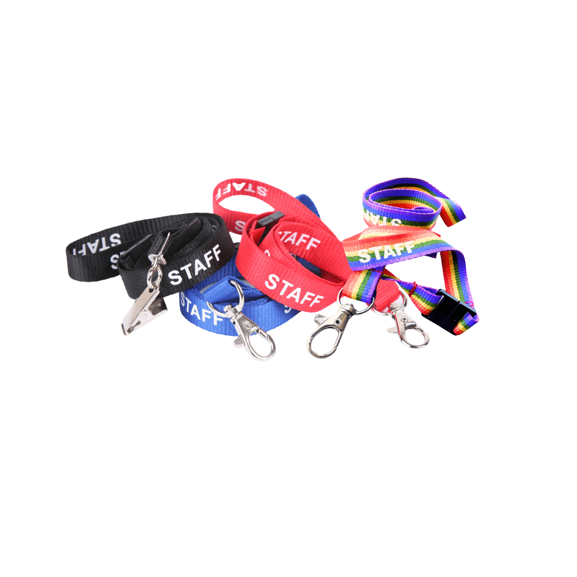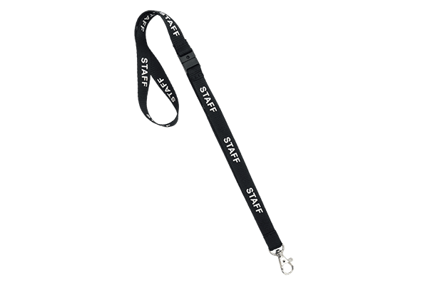Preprinted Stock Title Staff Lanyard 15mm. Safety breakaway comes as standard.