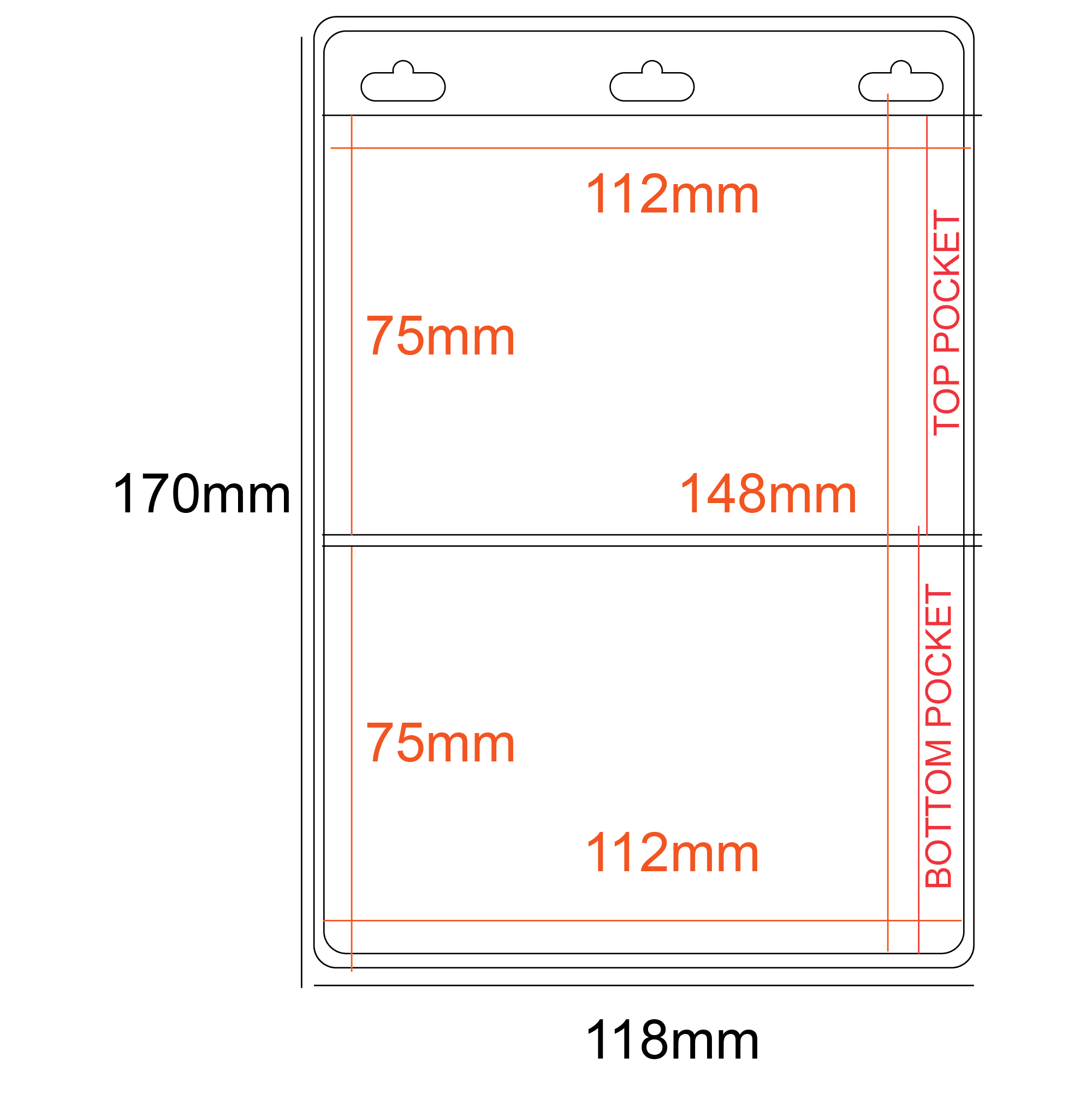 A portrait PVC holder with 3 compartments. The flexible PVC holder can be used either way depending on how you want to face the largest compartment front or back.