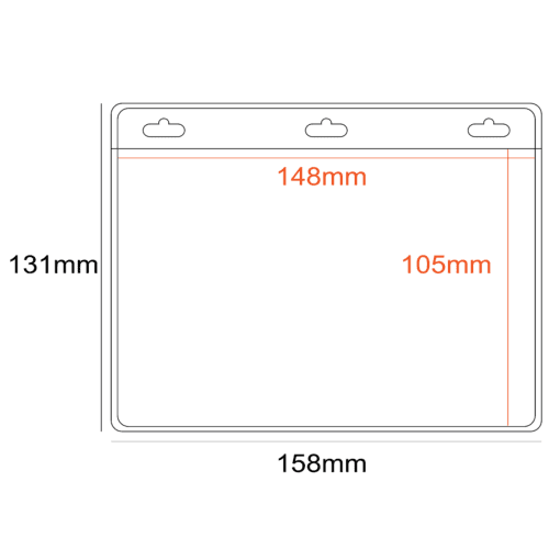 Single compartment; large landscape name card holder which is A6 size 1/4 of A4. A flexible soft clear gloss PVC holder with 3 Slots for Lanyard Attachments.