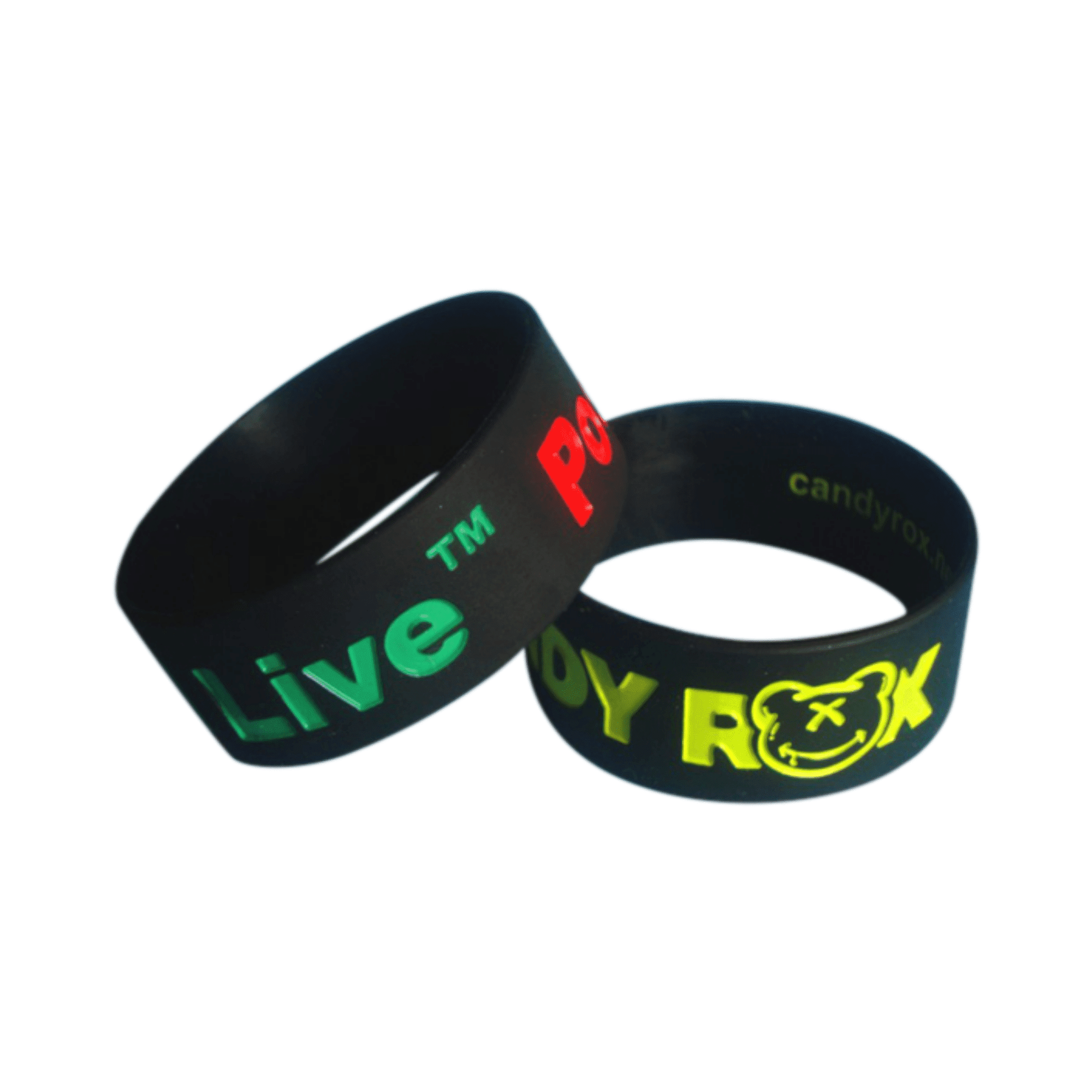 Silicone wristband is now available 25mm wide. Make your logo stand out even more. Debossed and 1 Colour Ink Fill. Sizes: Youth 202mm or Adult 210mm. POA