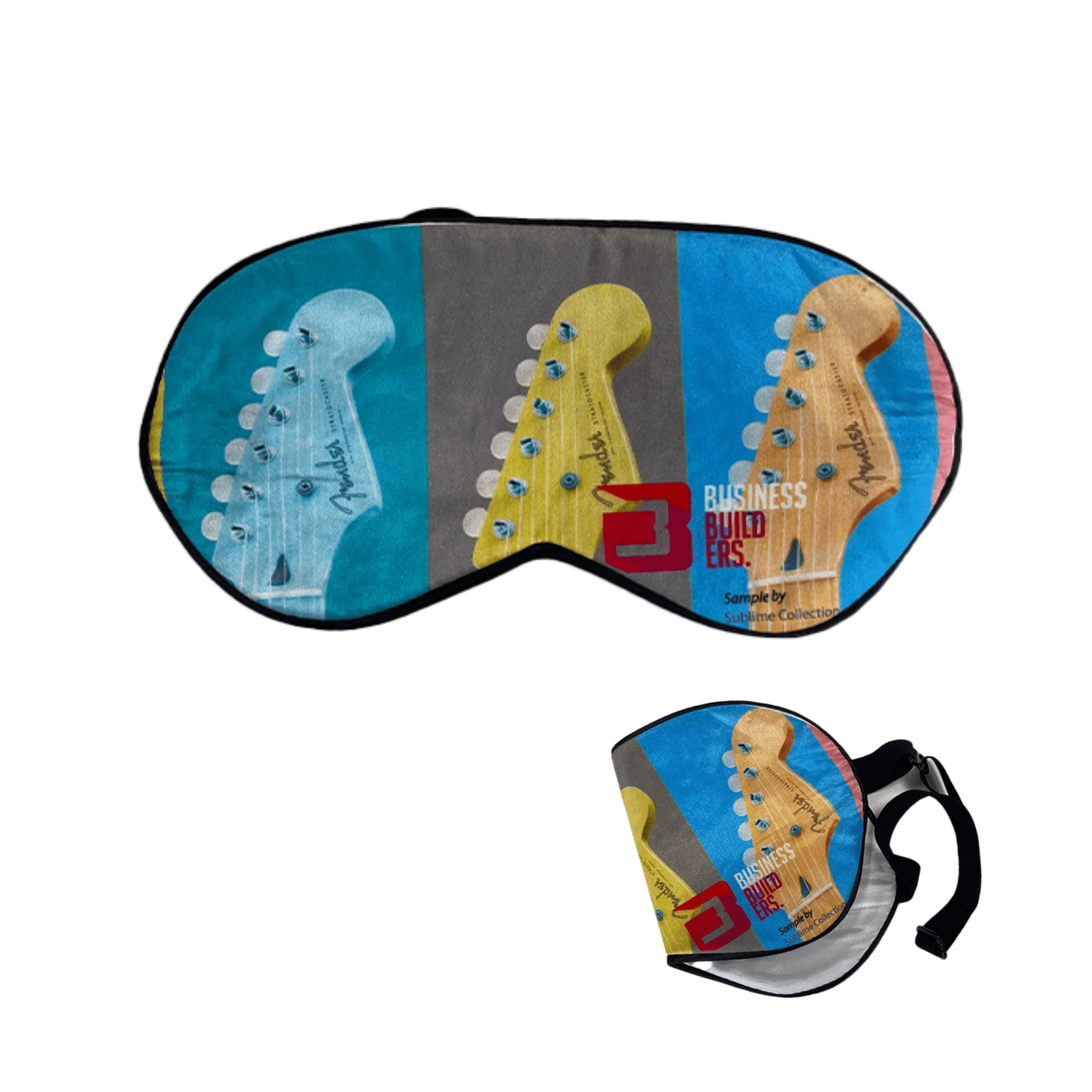 Locally printed full colour eye mask with a silk like feel and black adjustable strap. Bright, vibrant,and a great promotional item or gift.