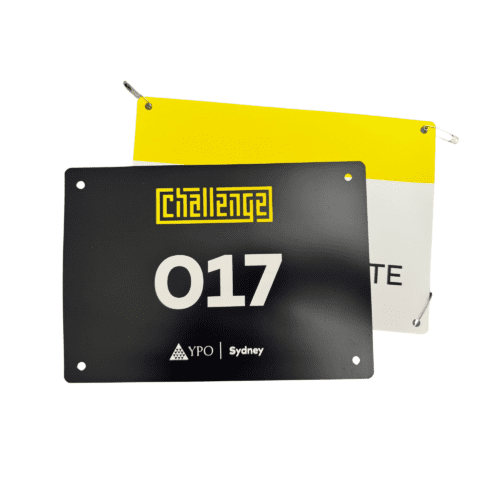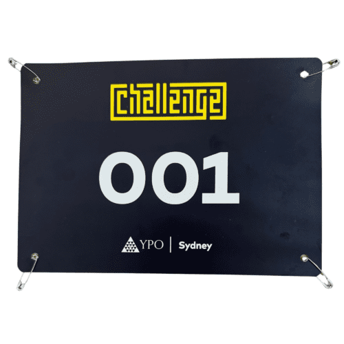 Full colour custom printed Event Chest Bibs for sporting events. The bibs are made from a never tear synthetic paper that is suitable for outdoor use. Available in 2 popular sizes